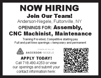 JOB OPPORTUNITY: A local fire protection company is seeking full-time and part-time employees to assist with field service, shop, and installation tasks. The work varies based on your skill set. Applicants should be mechanically inclined, punctual, self-motivated, and possess a degree of common sense. Random drug testing, a background check, and a clean driving record may be required. If interested, please contact: Fyr-Fyter, Inc., 8 Railroad Ave., Oneonta, NY 13820. 607-433-2800 and we will return your call sales@fyrfyter.com