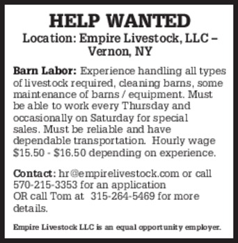 HELP WANTED: Flexible schedule. Local power washing, landscaping, carpentry, drywall, cleanup and general property maintenance. Call/text 607-252-6778 or email thunderroadrealty@gmail.com.