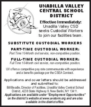 BOCES WIDE Full Time - Cook Manager Full Time - Building Maintenance Mechanic II (HVAC) Walton Full Time - Computer Technician or Computer Technical Assistant Norwich Full Time - Principal Account Clerk or Senior Account Clerk Substitutes Custodial, Courier, Food Service Helper, and Laborer It's a great time to work at DCMO BOCES! Applications found at: https://www.dcmoboces.com/o/dcmo-boces/page/current-vacancies. Send completion to recruiting@dcmoboces.com or mail to DCMO BOCES 142 Whaupaunaucau Rd, Norwich NY 13815