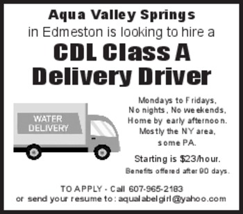 GENERAL CONTRACTOR looking to hire. Contruction Worker, General Laborer, Masonry Worker, Carpenter, Equipment Operator. CDL License a plus but not required. Experience helpful but also not required. Pay based on experience. Call 607-965-8413.