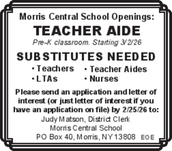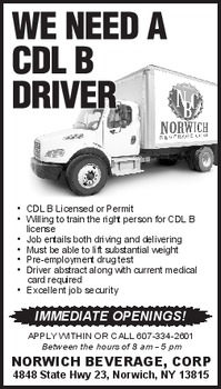 DCMO BOCES IS HIRING THE following positions: Head Cook to provide supervisory role in planning, preparing and food service in Norwich (full time), Substitute Couriers, Custodial Workers, Food Service Helpers, or Laborers in Norwich or Masonville (as needed), Safety Technician OR Assistant Health & Safety Coordinator - full, office located in Norwich, but travel required BOCES-wide It's a great time to work at DCMO BOCES! Applications found at: https://www.dcmoboces.com/o/dcmo-boces/page/current-vacancies. Send completion to recruiting@dcmoboces.com or mail to DCMO BOCES 142 Whaupaunaucau Rd, Norwich NY 13815