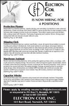 Upstate Tool and Equipment, LLC is looking for hardworking, dependable employees to work mostly out of town. Please call for more information 607-405-0778
