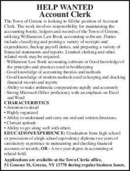 HELP WANTED CHENANGO EYE Associates is hiring for a Medical Billing Specialist. Job responsibilities include: Ensuring accurate claims information, including patient data, diagnoses and procedure codes; Reconciling claims billing reports and posting; Submitting claims on time to primary, secondary and tertiary payers; Following up on denied or unpaid claims, including appeals and resubmissions. Benefits include: 401(k) & matching, employee discount, health insurance, paid time off and NYSE sick pay, paid holidays, yearly bonus, on-the-job training. Competitive pay based on experience and education. Full time position, Monday-Friday, no weekends. Qualifications: High School Diploma or GED required. Medical Billing experience preferred. The ideal candidate demonstrates strong attention to detail, exceptional organizational skills, and the ability to mange multiple priorities in a fast-paced healthcare environment with professionalism and accuracy. Send resumes to: 194 Grandview Lane, Norwich, NY 13815 or email resumes to spotter@chenangoeye.com. 607-334-3225.