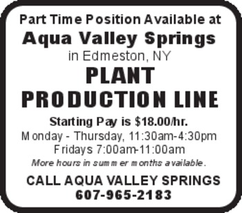 NOW HIRING full time/part time delivery/laborer for water delivery company. If interested call 607-437-8094 ask for Shari.