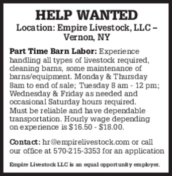 HELP WANTED on personal construction project, skilled or unskilled, potential 5 months or temporary, near Gilbertsville, NY. 607-437-6998.